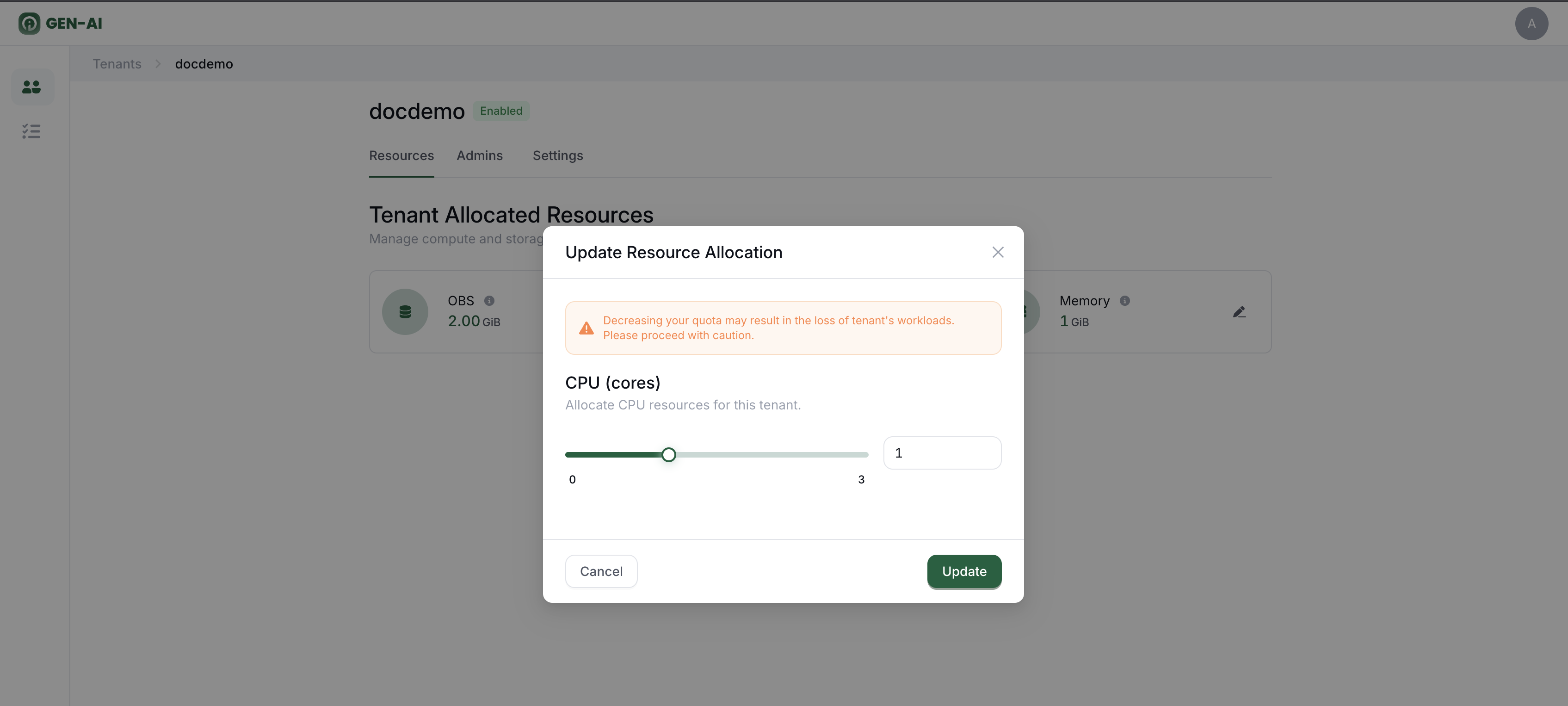 - Tenant starts with no allocated compute resources until they are provisioned.
