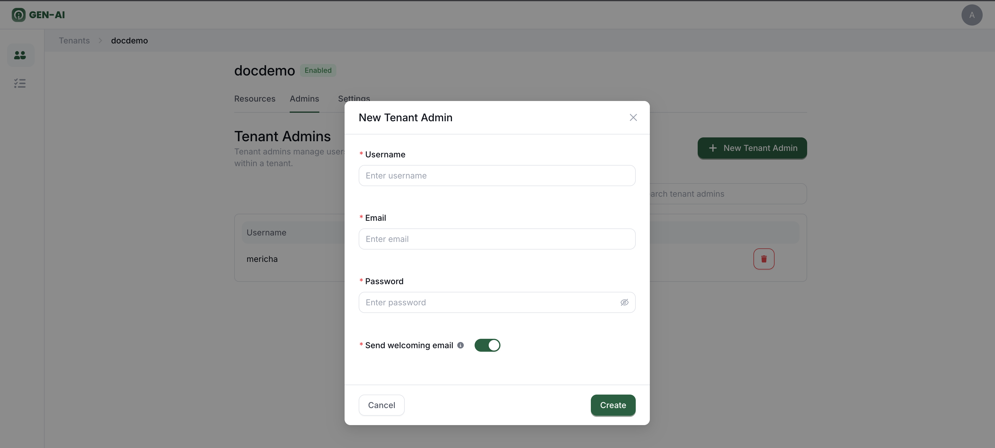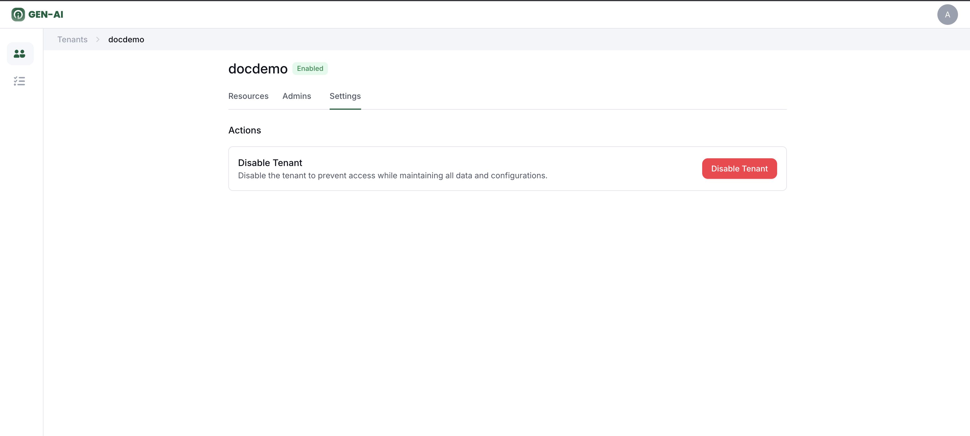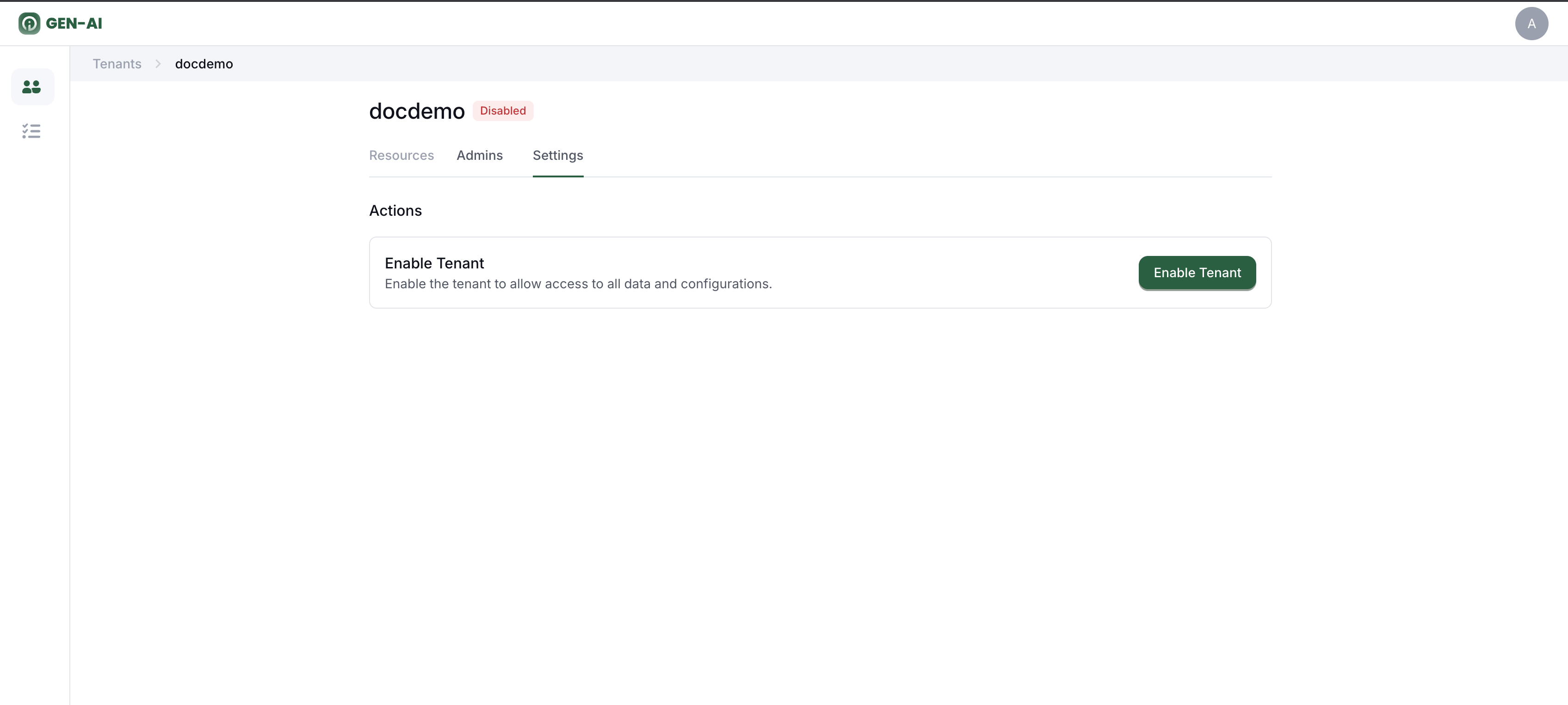 This section explains the available administrative actions that can be performed on tenants within the system.
